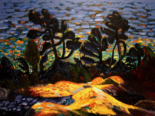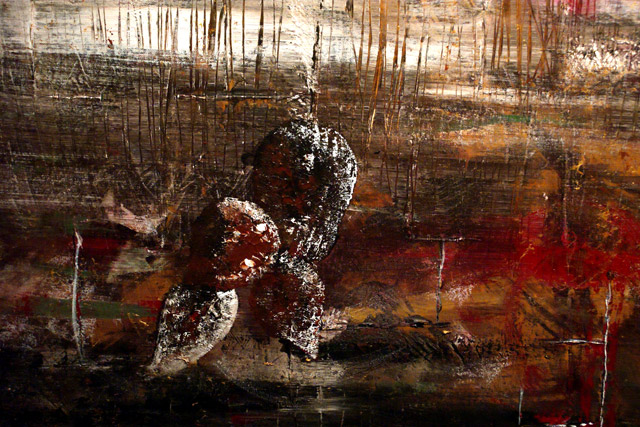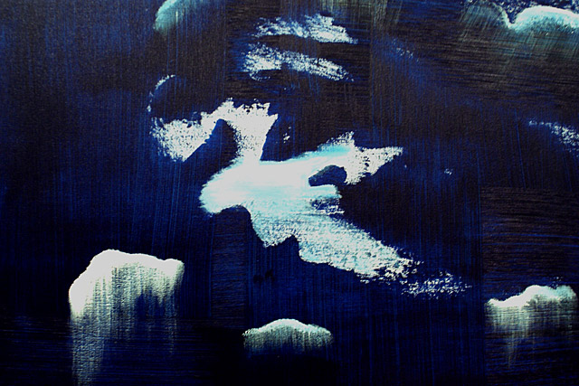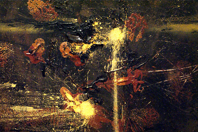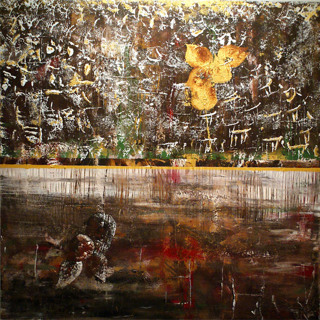 I like to work on canvas when I need to be traveling, but I do prefer to work on different surfaces such as wood. I enjoy working on wood because it is stronger, more durable, and you can build lots of texture. I like building my own surfaces to paint on when I can, whether I am building a frame for my wood panel, or stretching my own canvas. What I find very appealing about working on canvas is it is light, and very clean looking. For more information on each individual painting please refer to my blog.