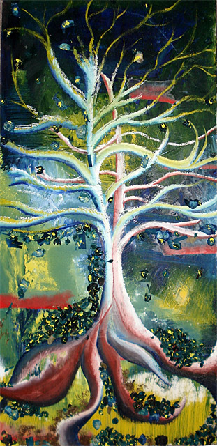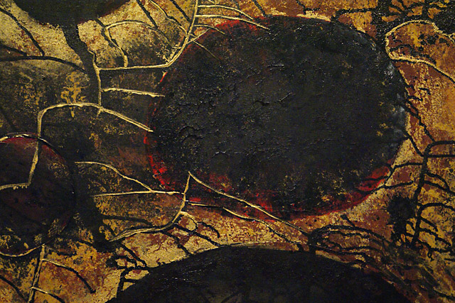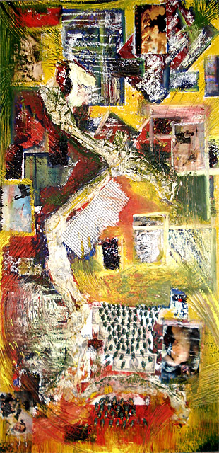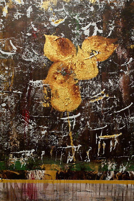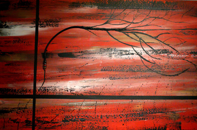 I like to work on canvas when I need to be traveling, but I do prefer to work on different surfaces such as wood. I enjoy working on wood because it is stronger, more durable, and you can build lots of texture. I like building my own surfaces to paint on when I can, whether I am building a frame for my wood panel, or stretching my own canvas. What I find very appealing about working on canvas is it is light, and very clean looking. For more information on each individual painting please refer to my blog.